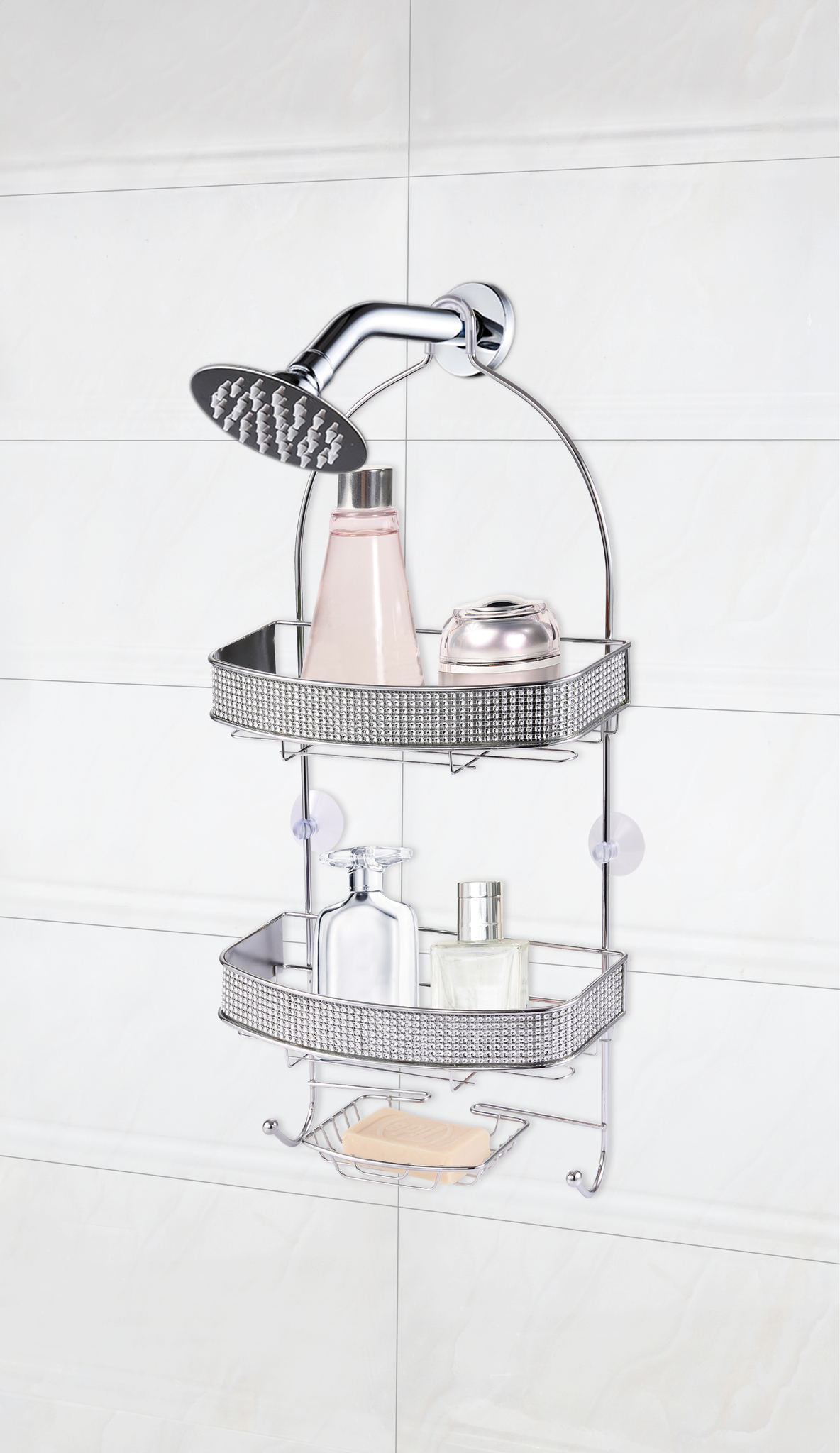 Chrome Shower Caddy : Two tier caddy with soap dish.read more.. Find great deals on ebay for chrome shower caddy. Zenna home neverrust rustproof tension pole shower caddy, satin chrome. Simply hang this chrome shower caddy over your shower head for easy storage of all your soaps, shampoo, conditioner, wash cloths and other bathroom essentials. Chrome shower caddy provides extra space in the shower, keeping shower essentials off the floor and organized in an easy to access hanging caddy. This shower caddy is a great way to keep your shower essentials organized and in style with its compact design and easy to carry handle, it is the perfect addition to any kitchen.
